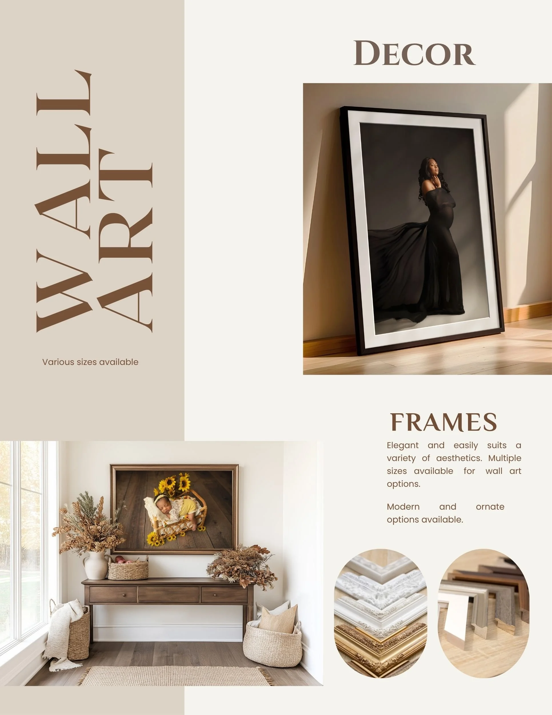I will guide you through every step of your photo session, from planning and outfit selection to creating pieces just for your home. In the studio, I ensure perfect lighting, set design, and offer posing guidance to capture your beautiful journey. After the shoot, we will explore the gallery together and create artwork for your home.